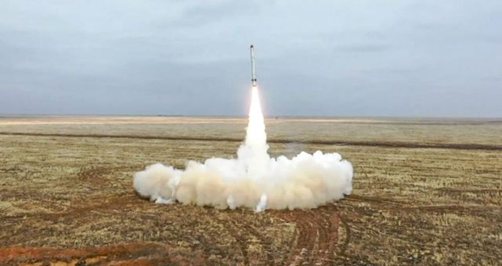 | Tir d'un missile Iskander au cours d'un entraînement en Russie en février 2022. |