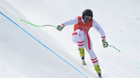 | L'Autrichien Vincent Kriechmayr lors du 3e entraînement de descente, le 10 février à Pyeongchang. |