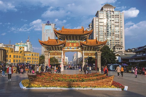 | Un coin de la ville de Kunming, capitale du Yunnan, en Chine. |
