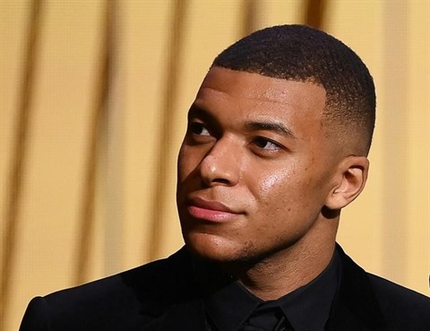 | Le footballeur international Kylian Mbappé, en novembre 2021 à Paris. |