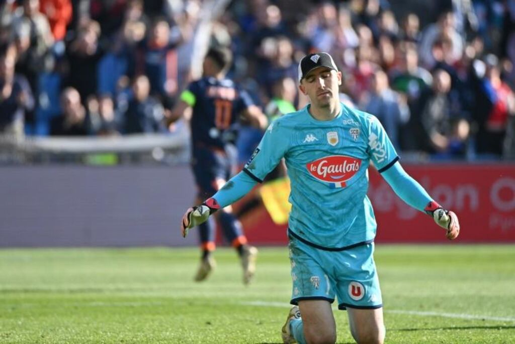 | Le gardien du SCO, Angers Paul Bernardoni, dépité après avoir encaissé le 4e but de Montpellier à la Mosson, le 5 mars. |