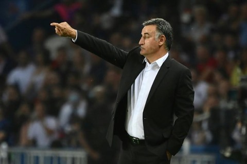 | L'entraîneur parisien Christophe Galtier donne des consignes à ses joueurs contre la Juventus au Parc des Princes, le 6 septembre. |