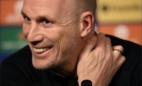 | Philippe Clement, alors entraîneur de Bruges, lors d'une conférence de presse, le 6 décembre à Paris. |
