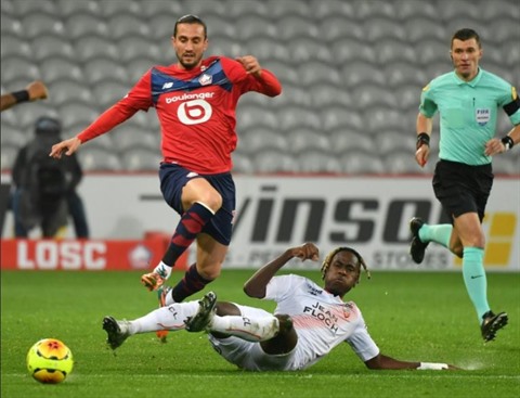 | Le milieu turc de Lille, Yusuf Yazici (gauche), auteur d'un doublé lors du match de Ligue 1 contre Lorient, à Villeneuve-d'Ascq, le 22 novembre. |