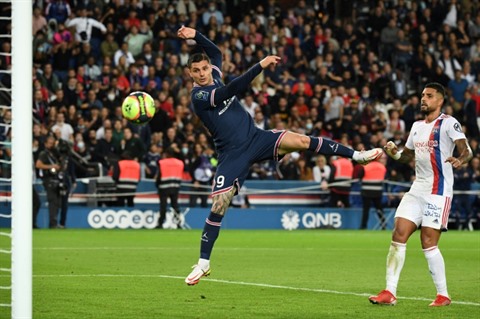 | Mauro Icardi, de la tête, offre la victoire à Paris sur Lyon au Parc des Princes, le 19 septembre. |