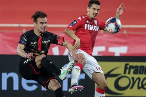 | L'attaquant de Monaco Wissam Ben Yedder (droite) à la lutte avec le défenseur de Rennes Damien Da Silva, le 16 mai au stade Louis-II. |