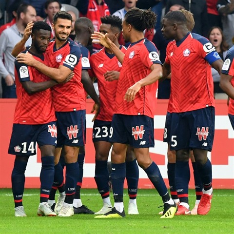 | Les joueurs de Lille, vainqueurs de Saint-Étienne en L1, le 6 octobre à Villeneuve d'Ascq. |