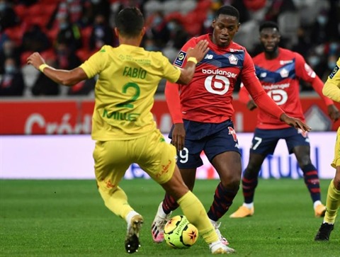 | Jonathan David face au défenseur de Nantes Fabio Da Silva, le 25 septembre au Stade Pierre-Mauroy de Villeneuve-d'Ascq. |