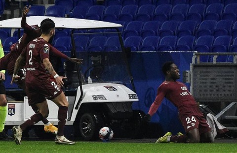 | L'attaquant belge de Metz, Aaron Leya Iseka (droite), marque le seul but de la rencontre à Lyon, en Ligue 1, le 17 janvier. |