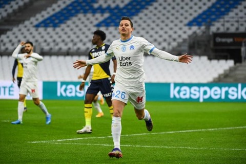 | Le milieu de Marseille, Florian Thauvin, a ouvert le score lors du match de Ligue 1 à domicile contre Monaco, le 12 décembre |
