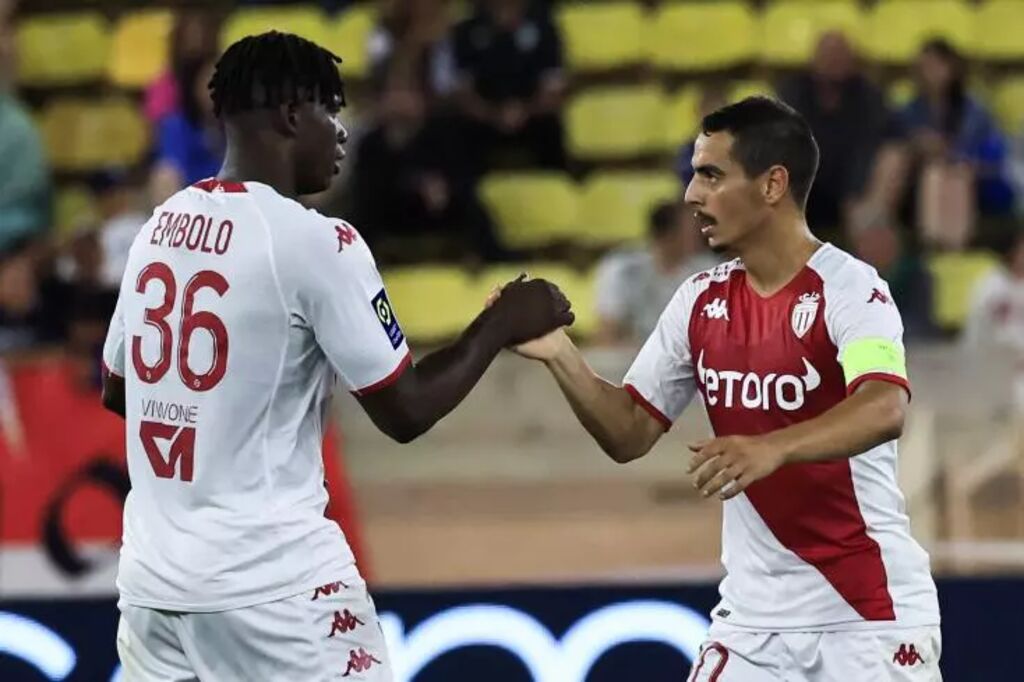 | Les Monégasques Breel Embolo (gauche) et Wissan Ben Yedder lors du match contre Toulouse, le 3 juin au stade Louis-II. |
