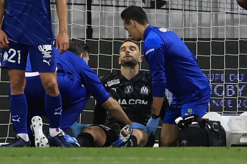 | Le gardien de l'OM, Pau Lopez, blessé à la cuisse gauche à Nice, le 21 octobre. |