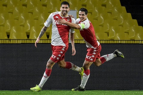 | Guillermo Maripan (gauche) auteur du premier but de Monaco contre Nantes, félicité par Wissam Ben Yedder, le 31 janvier à La Beaujoire. |