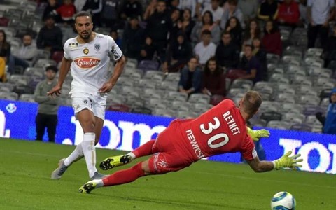 | L'attaquant angevin Rachid Alioui inscrit le 2e but de son équipe à Toulouse, le 25 septembre. |