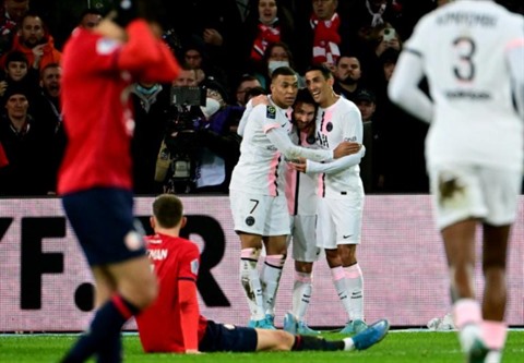 Éliminé de la Coupe de France lundi 31 janvier par Nice aux tirs au but, le PSG ne s'est pas fait prier pour profiter des erreurs nordistes, deux boulettes du gardien Ivo Grbic et une perte de balle aux abords de la surface converties par Danilo Pereira, Presnel Kimpembe et Lionel Messi en première période (10e, 32e, 38e). Le Portugais a même inscrit un doublé (51e), et Kylian Mbappé a trouvé la lucarne au retour des vestiaires (67e).