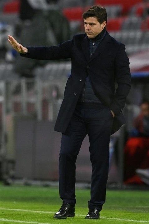 | Le coach du PSG, Mauricio Pochettino, replace ses joueurs opposés au Bayern Munich en Ligue des champions à l'Allianz Arena, le 7 avril. |