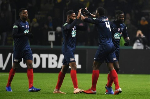 | Les joueurs de Châteauroux lors d'un match de Coupe de France contre Nantes à La Beaujoire, le 4 janvier 2019. |