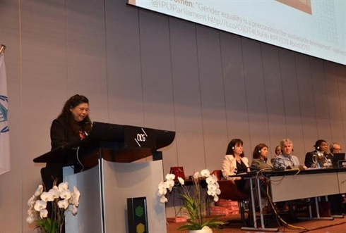 | La vice-présidente de l'AN vietnamienne Tong Thi Phong prend la parole à la clôture de la 131e Assemblée de l'UIP. |