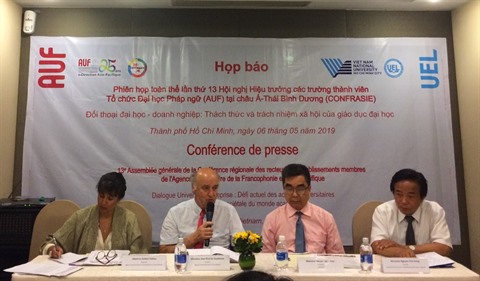 "+Dialogue Université - Entreprise: Défi actuel des acteurs universitaires et responsabilité sociétale du monde académique+ est le thème de la 13e Assemblée générale de la Conférence régionale des recteurs des établissements membres de l’Agence universitaire de la Francophonie (AUF) en Asie-Pacifique (CONFRASIE)", a révélé Nguyên Ngoc Diên, vice-recteur de l’Université d’économie et de droit (relevant de l’Université nationale de Hô Chi Minh-Ville), président de la CONFRASIE.