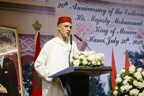 Lors de la cérémonie, le nouvel ambassadeur du Maroc au Vietnam, Jamal Chouaibi, a affirmé que ce 20e anniversaire du couronnement du Roi Mohammed VI Ben al-Hassan (1999-2019) était l’occasion de revoir les progrès remarquables du pays en politique, économie, diplomatie, etc.