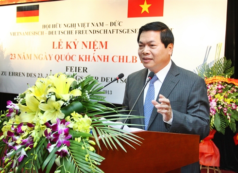 Le ministre de l'Industrie et du Commerce, également président de l'Association d'amitié Vietnam-Allemagne, Vu Huy Hoàng, a adressé ses meilleurs vœux aux amis allemands à l'occasion de leur Fête nationale avant de passer en revue les réalisations de ces derniers temps de la coopération entre le Vietnam et l'Allemagne.