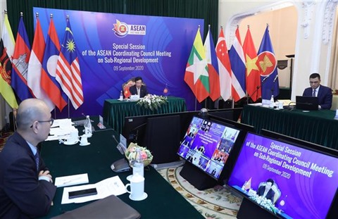 | Une session extraordinaire de la 27e conférence du Conseil de coordination de l'ASEAN se tient sous forme en ligne le 9 septembre. |