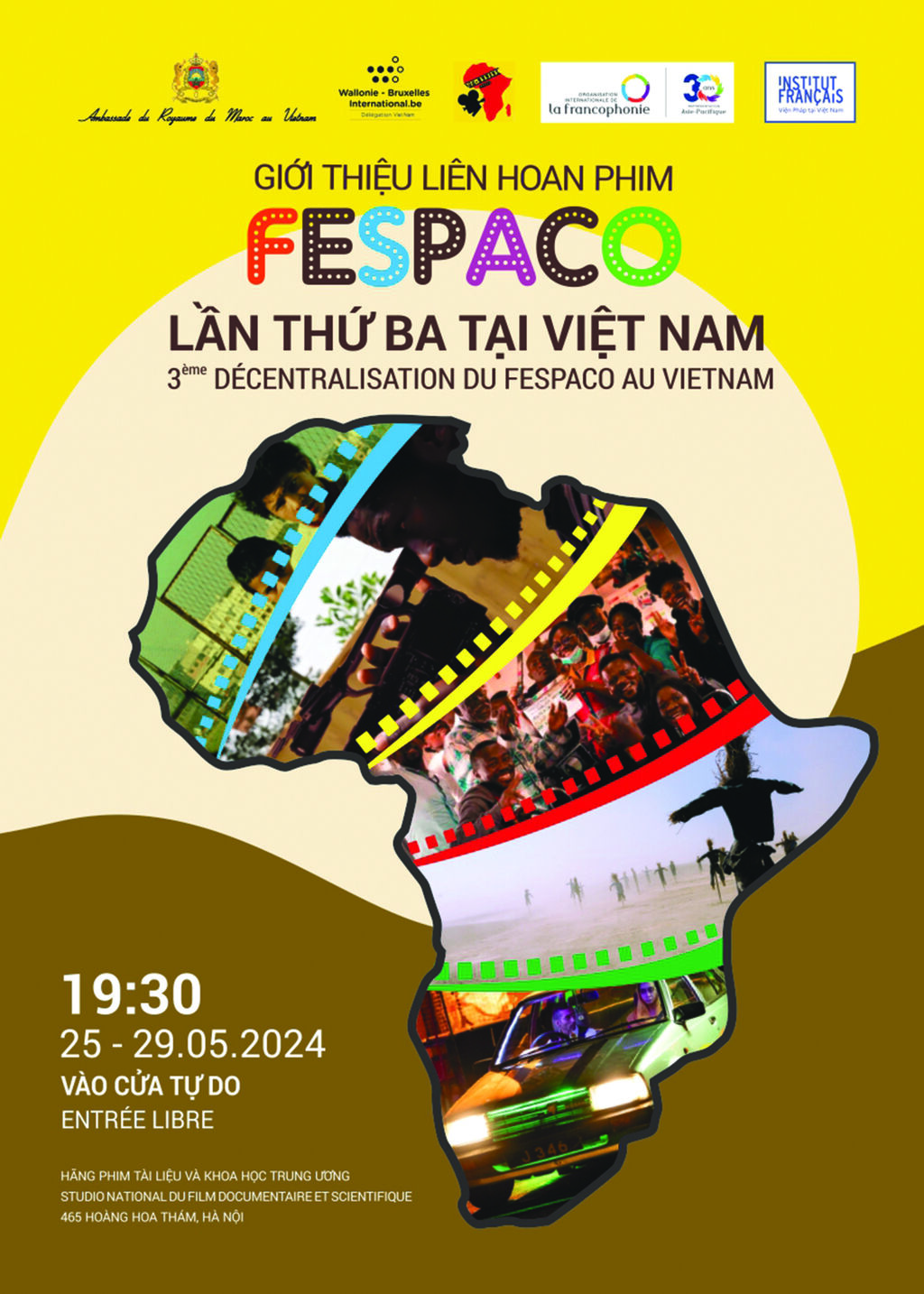 La 3e décentralisation du Festival panafricain du cinéma et de la télévision de Ouagadougou (FESPACO) est organisée par l’ambassade du Maroc au Vietnam, la Représentation régionale pour l’Asie et le Pacifique (REPAP) de l’Organisation internationale de la Francophonie (OIF), l’Institut français du Vietnam et la Délégation générale Wallonie-Bruxelles au Vietnam, à l’occasion de la Journée de l’Afrique, le 25 mai.