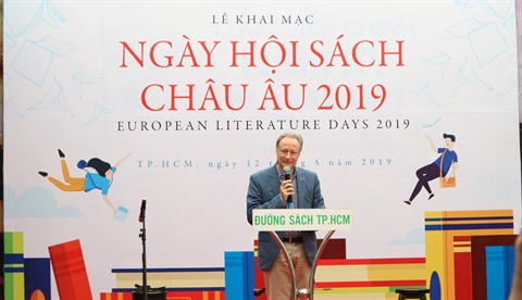 | L’ambassadeur Bruno Angelet, chef de la Délégation de l’UE au Vietnam, s'exprime lors de l'ouverture de la Journée des livres européens, le 12 mai à Hô Chi Minh-Ville. |