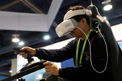 | Un visiteur teste un jeu vidéo en réalité virtuelle au Consumer Electronic Show de Las Vegas en janvier. |