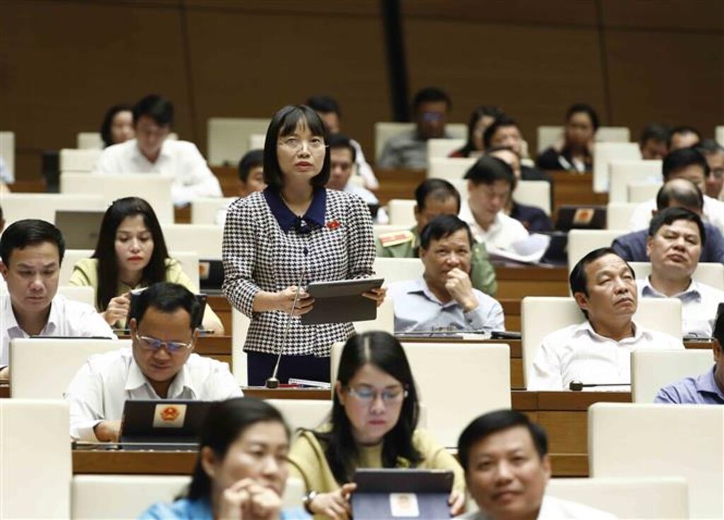 | La députée de la province de Hai Duong (Nord), Nguyên Thi Viêt Nga, prend la parole devant l'AN, le 26 octobre. |