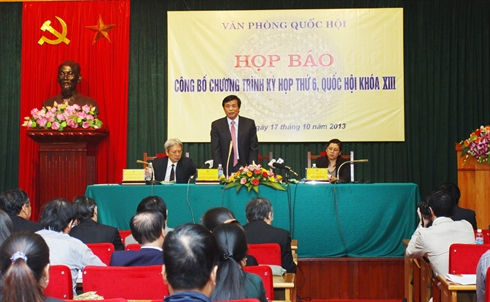 | Conférence de presse, le 17 octobre à Hanoi, sur l'ordre du jour de la 6e session de l'Assemblée nationale de la XIIIe législature. |
