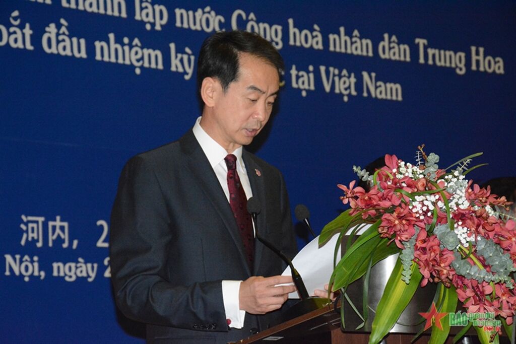 | L'ambassadeur de Chine au Vietnam, He Wei, s'exprime lors de l'événement. |