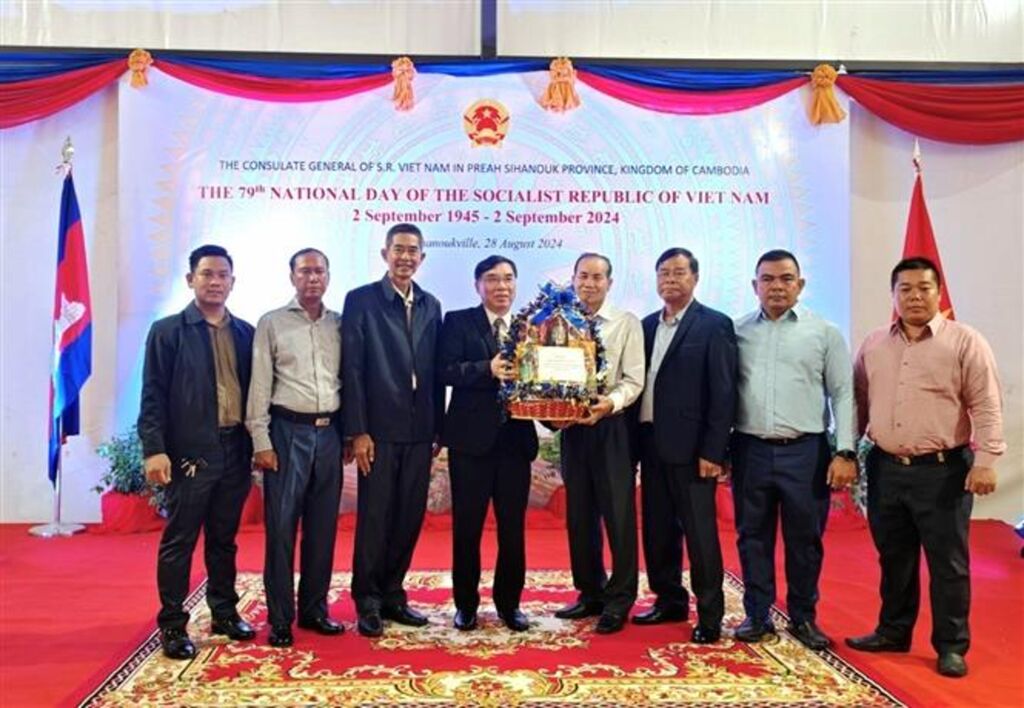 | Les délégués félicitent le consul général du Vietnam au Cambodge, Lai Xuân Chiên, à l’occasion de la 79e Fête nationale du Vietnam, le 28 août. |