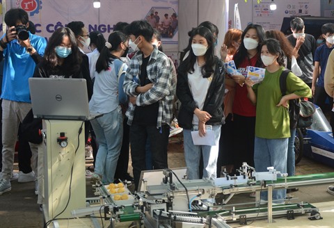 | Lors du talk-show tenu dans le cadre de la 9e Conférence annuelle des jeunes scientifiques vietnamiens en 2023. |