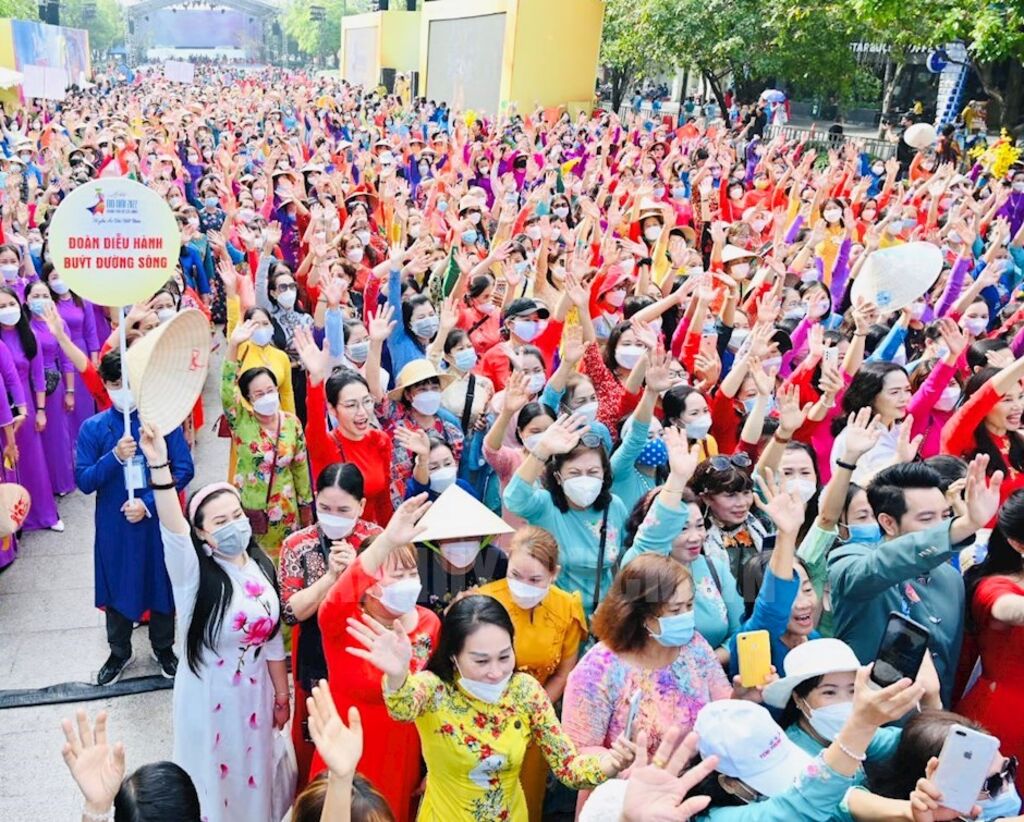 Selon le comité d'organisation, plus de 3.000 personnes dont de nombreuses célébrités ont participé à un défilé en áo dài (tunique traditionnelle des Vietnamiennes) sur le thème "J'aime l'áo dài vietnamien", en l’honneur du 113e anniversaire de la Journée internationale de la femme et du 1983e de l'insurrection des deux sœurs Trung.