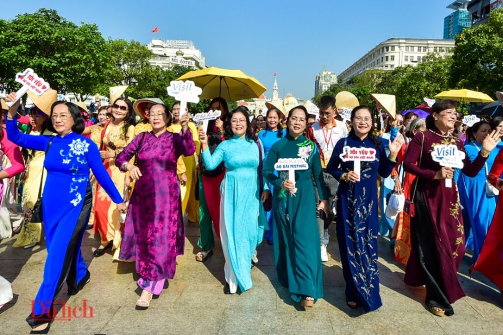 Le défilé a emprunté de grandes artères de la ville, tels que Lê Loi, Lê Thanh Tôn et Nguyên Huê en passant devant des lieux emblématiques telles que le monument du président Hô Chi Minh, le siège du Comité populaire de la ville, l'Opéra municipal ou l'hôtel Continental. Ont aussi été organisés un espace d'exposition honorant l’áo dài, une zone d'exposition d'images du concours "áo dài avec la famille", un chemin d’art de l’áo dài,...