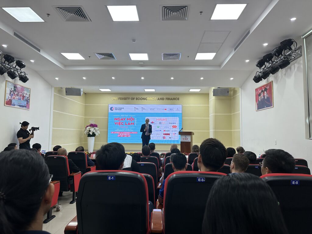| Au Salon de l'emploi franco-vietnamien 2024, à l'Université d'économie et de finance de Hô Chi Minh-Ville (UEF). |