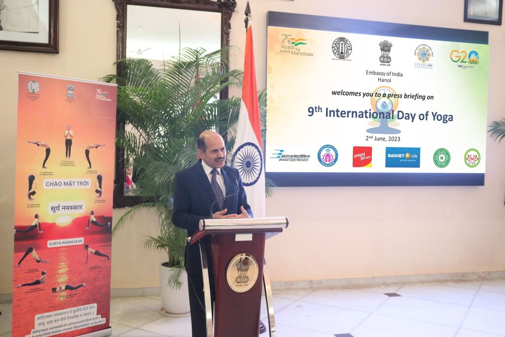 | L'ambassadeur indien au Vietnam, Sandeep Arya, annonce l’organisation de la 9e Journée internationale du yoga au Vietnam. |
