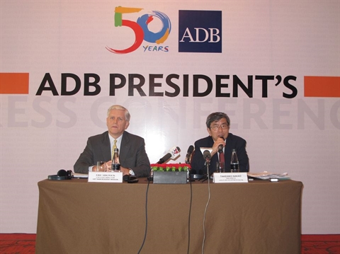 | Le président de la Banque asiatique pour le développement (BAD), Takehiko Nakao (droite), et le directeur national de la BAD au Vietnam, Eric Sidgwick, lors d’un point presse le 17 juin à Hanoi. |