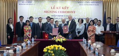 | Cérémonie de signature entre le ministère vietnamien des Finances et de la BAD, à Hanoï. |