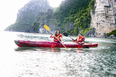 Le kayak à la cote en baie de Ha Long (province de Quang Ninh, Nord). À raison