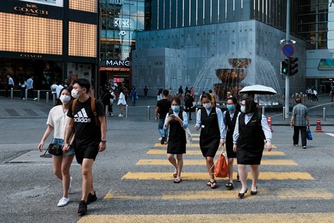 | Les gens se déplacent à Kuala Lumpur, en Malaisie, le 16 mars. |