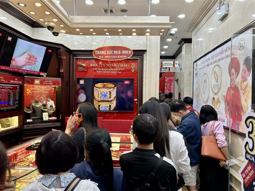 | Des acheteurs font la queue devant un magasin d’or à Hanoï. |