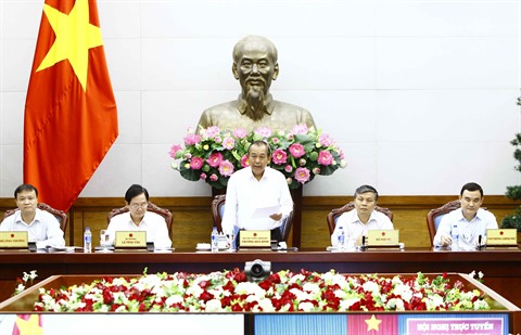| Le vice-Premier ministre Truong Hoà Binh (debout) lors de la réunion sur l'indice de réforme de l'administration publique, le 30 mai à Hanoï. |
