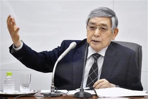| Le gouverneur de la Banque du Japon, Haruhiko Kuroda, lors d'une conférence de presse, le 18 juin à Tokyo. |