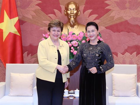 | La présidente de l’Assemblée nationale vietnamienne, Nguyên Thi Kim Ngân (droite), et la directrice exécutive de la Banque mondiale, Kristalina Georgieva, le 23 mars à Hanoï. |
