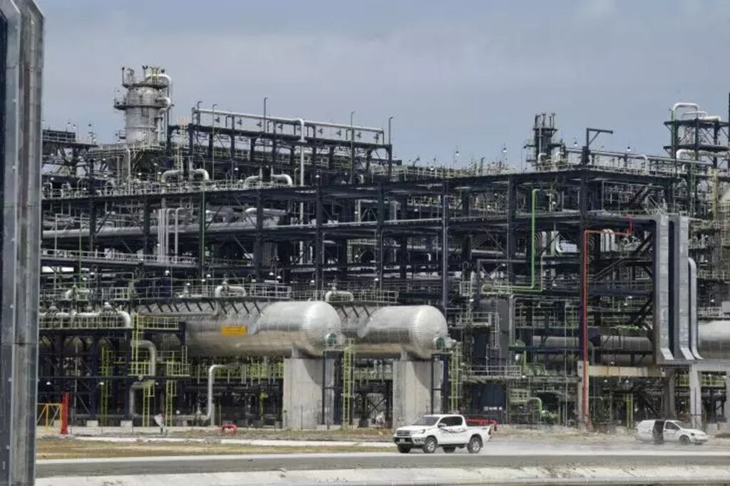 | Vue de la méga-raffinerie de pétrole du magnat Aliko Dangote à Lekki, près de Lagos au Nigeria. |