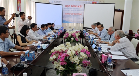 | Une séance de travail entre le groupe de travail de la Banque mondiale et le Comité populaire de la province de Ninh Thuân (Centre), le 25 août dans cette province. |