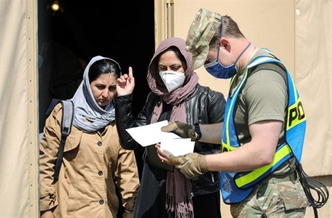 | Des réfugiés afghans arrivant sur la base aérienne américaine de Ramstein, en Allemagne, le 26 août. |