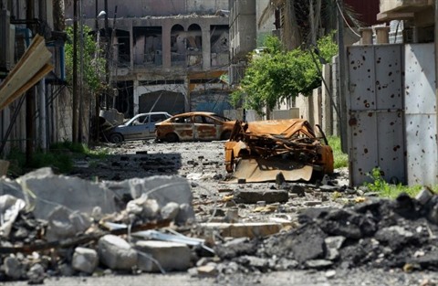 | Une rue en ruines dans la vieille ville de Mossoul le 17 avril. |